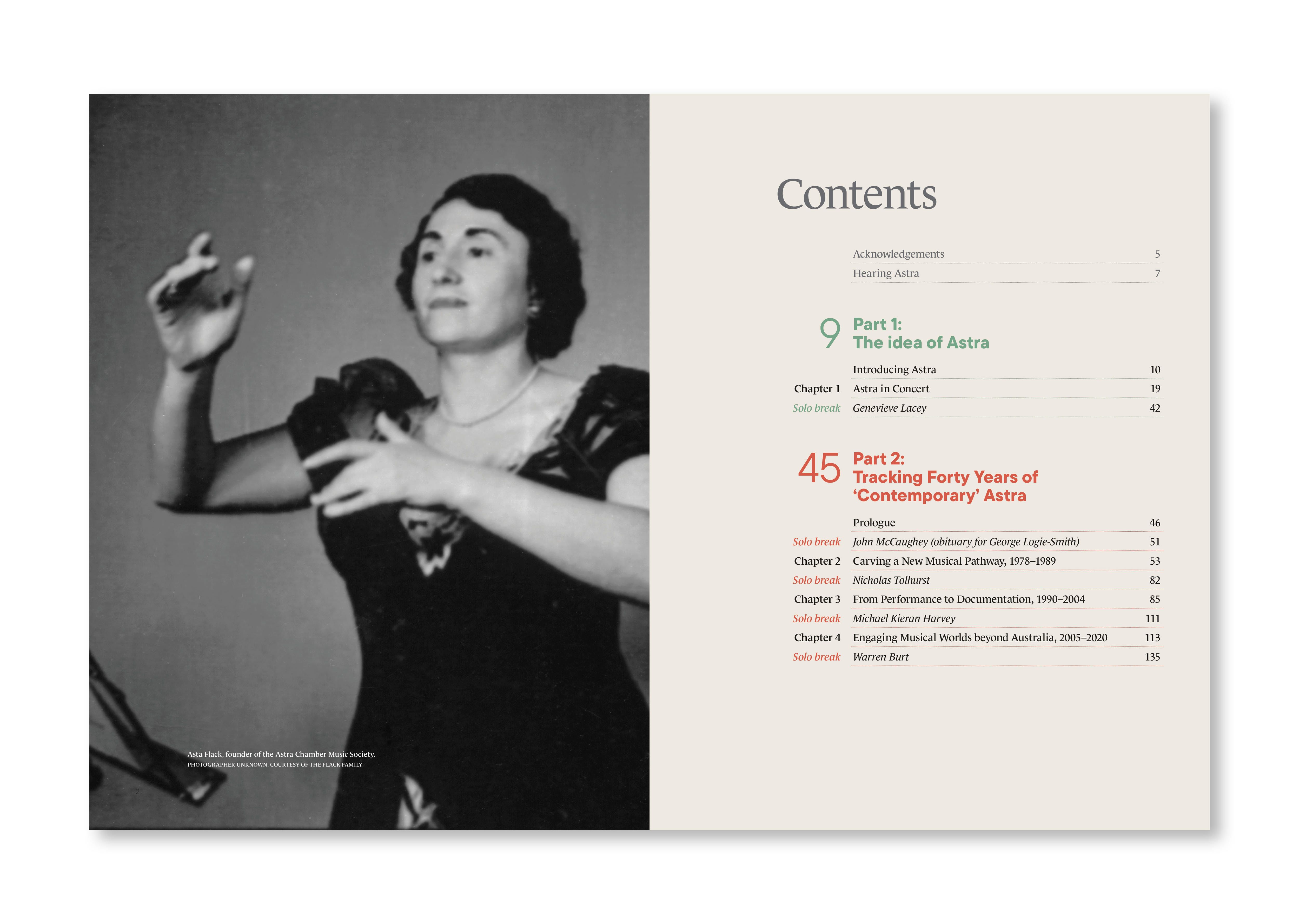 Music ensembles come and go but Astra is inked deeply into Melbourne’s ongoing cultural fabric. Through the voices of its extensive network of local and international composer and performer contributors, Astra Travels in Sound and Space plots the 80-year journey of this dynamic contemporary music organisation from its origins as a women’s string orchestra under Asta Flack, through the large choir and orchestral repertoire presented under George Logie-Smith, to the extraordinary 45 years of rich and imaginatively conceived programming under John McCaughey, joined recently by co-director, Andrew Byrne.