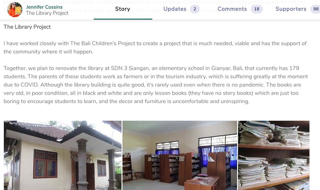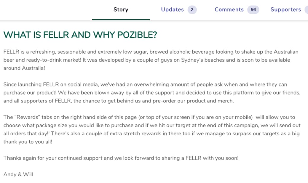 Connect with people by introducing yourself and how the idea came about. 93% of our top supporters pledge because they love supporting people and their stories. Build trust by telling some backstory about yourself, the project or whatever lead to the creation of this campaign. Expand on any interesting elements of your pitch video and don't forget to be genuine!
