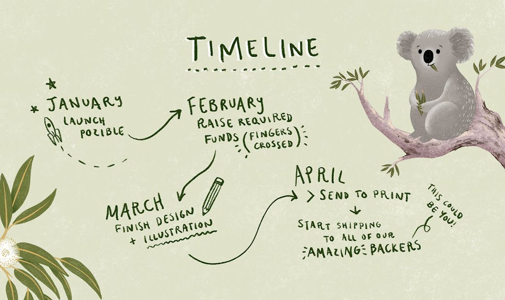 Set the expectations for when your key project deadlines will be met. This will give supporters an idea of the scope of the campaign, when they can expect to receive their rewards and will also make them feel a part of the action!