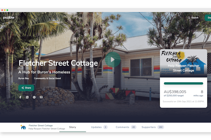 'Help Reopen Fletcher Street Cottage’ was launched by the Byron Community Centre and Creative Capital, to provide a safe space and assistance for those in need. This campaign raised an impressive $398,005 and far exceeded their initial target of $250,000!