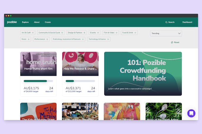 Feature on the Pozible website which receives over 40,000 monthly visitors and attracts support from our amazing community of crowdfunding fans. Build momentum by sharing your Pozible campaign on your social media networks like Facebook, Twitter & Instagram and track referrals on our Campaign Analytics dashboard. Give yourself the best chance of success by accessing our extensive library of resources, planning guides and talking to our expert team based locally in Australia.