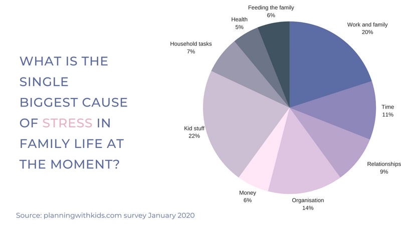Work and family issues were the second biggest cause of stress to families (20%) and this covered issues like trying to do everything, the contentious issue of balance between work, home duties and kids, the feeling of constantly juggling too many responsibilities, a heavy mental load, struggling to keep up with everything, feeling overwhelmed and feeling like there is too much to do.