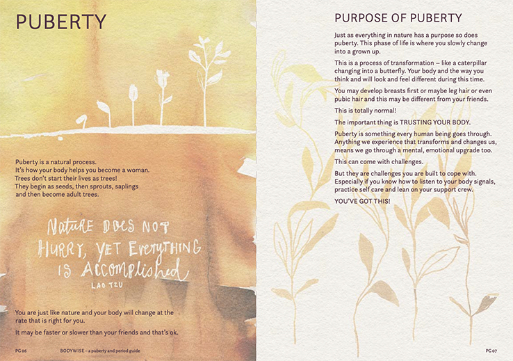 Receive: 2 x signed printed copies of Bodywise A Puberty and Period Guide. One for you. One to gift. 1 x Period Ritual Kit Ritual Kit Includes: 1 x Rudie Reusable Pad 1 x Organic Pad 1 x Liner 1 x Palo Santo stick 1 x Yellow Citrine Crystal 1 x Large Roller Oil for supporting you during the month Period and Body Positive Stickers Empowerment Cards We will also PURCHASE AND PLANT A TREE for you via CARBON NEUTRAL - one of Australia’s leading reforestation carbon project developers. https://carbonneutral.com.au