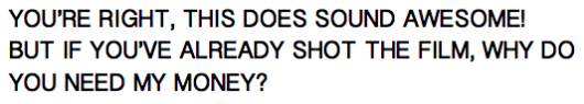 In all seriousness, we need $3000 to finish the film and enter it into some festivals. That way the movie can get seen, and Hollywood will be like ‘Woah, these guys are awesome - let’s stop development on Fast & Furious 40.'