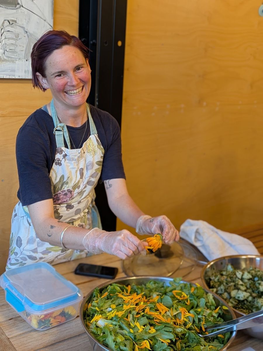 I have been cooking garden to table meals for retreats in a large commercial kitchen for many years now, and involved in local food system work including growing, preserving, hosting and education work for over a decade.