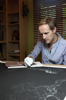 My art practice over of the last two years has taken a new direction by experimenting with hand drawing and carving into the photographic print creating one of artworks. By taking a scalpel to the image and scraping away details, the work combines the mechanical with the handmade. In doing so I reinforces the concept of displacement, be it of an individual or an ecosystem, underlining the impact humankind has on the various environments across our planet.
