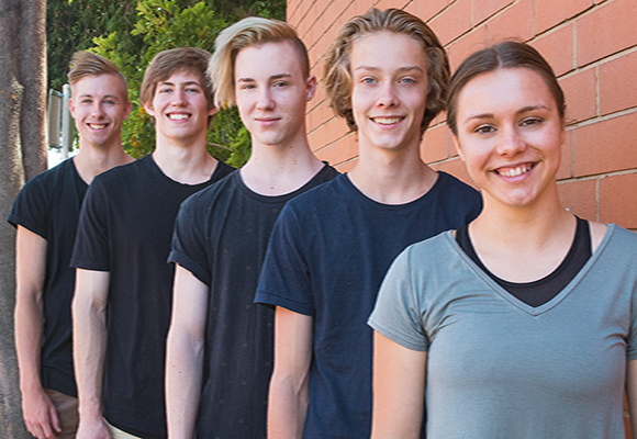 The group consists of Josh Croall, Hamish McCourty, Mark Longo, Margot Mansfield and Dylan Phillips who perform as acrobats, juggler, hand balancer and a dancer.