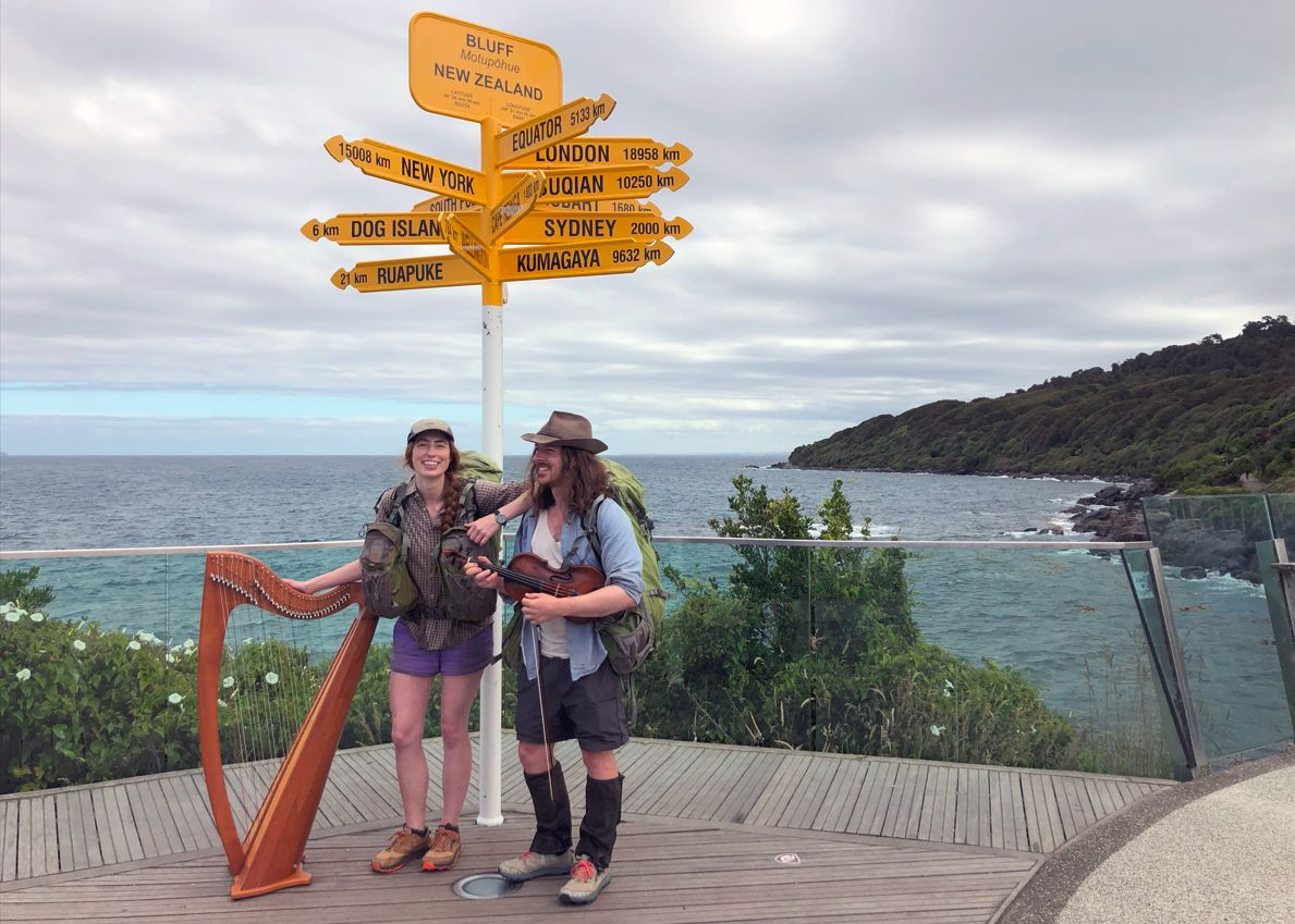 It’s Mickey and Michelle here. You might know us as that harp and fiddle duo whose inception began with the wild idea to tour the length of New Zealand on foot for 6 months.