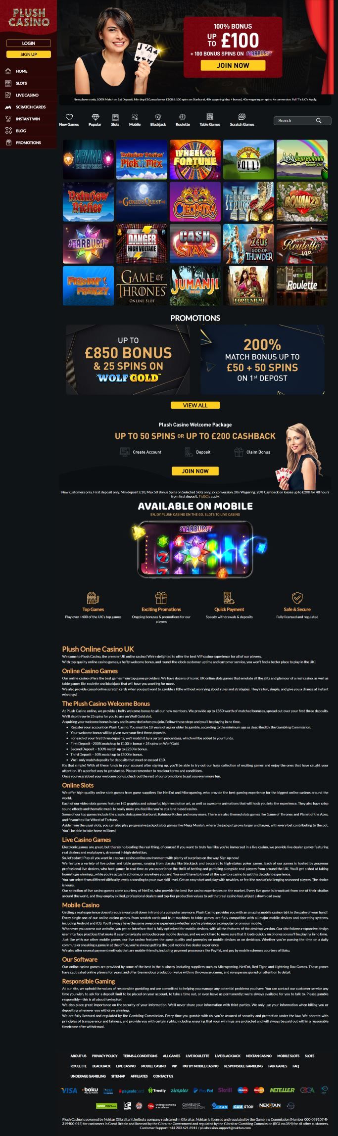 Plush Casino is delighted to offer the best VIP casino experience for all of their players.With top-quality online casino games, a hefty welcome bonus, and round-the-clock customer uptime and customer service, you won’t find a better place to play in the UK!