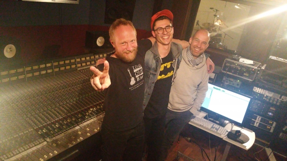 L-R: Scott Bradbury (drums), Roland Kay-Smith (bass), and Paul Leadbetter (piano) after a hard day's tracking.