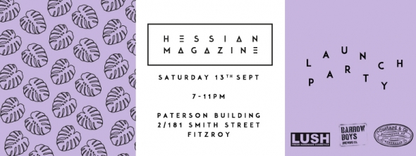 Where my party people at? Free entry to our sweet as launch party and an extra entry to win a LUSH cosmetics door prize. Ooooh, pretty things AND booze!* + Your name immortalised in print in Hessian’s Issue #1 supporter list, that’s right, you! + A million thanks and the knowledge that you are a part of something unique and you have kick-started the only sustainable publication that flips the bird at daggy greenies. *first come, first served basis; does not guarantee entry.