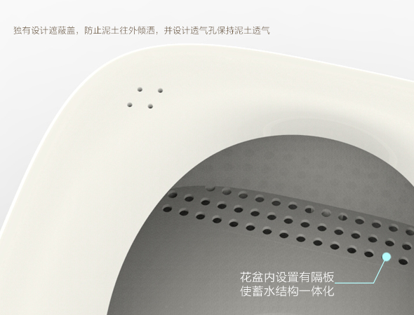 The Water Storage and the pot are integrated Design, with unique and decent cover to prevent the dirt messing up.