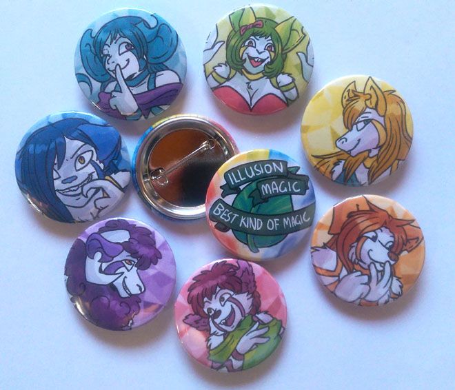 All of the buttons! An illusion magic button and seven rainbow peony buttons, all 37mm! +25mm cast buttons +rainbow peony print +printed comic +pdf