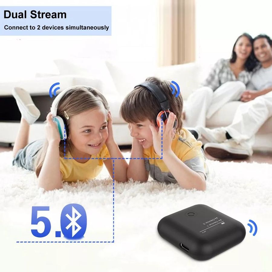 - Connect your own wireless headphones or speakers to any AUX devices, for example, connecting a TV to Bluetooth Speakers