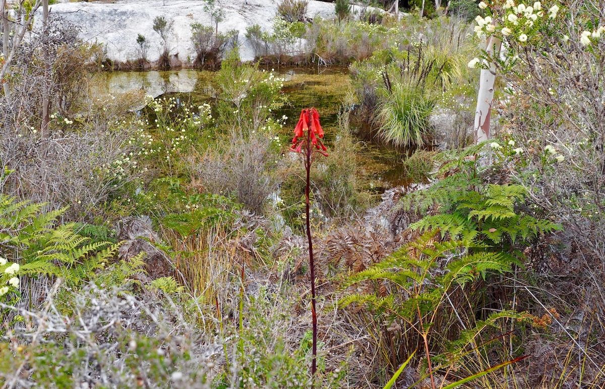 Blandfordia punicea (Christmas Bells) beside quarry pond