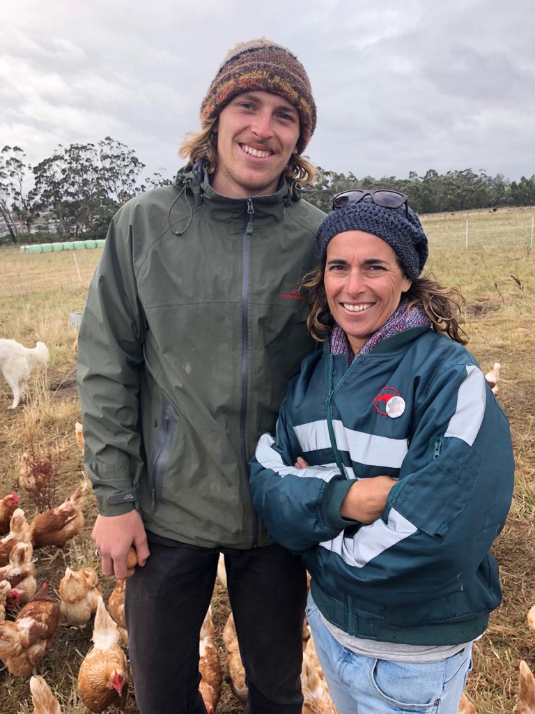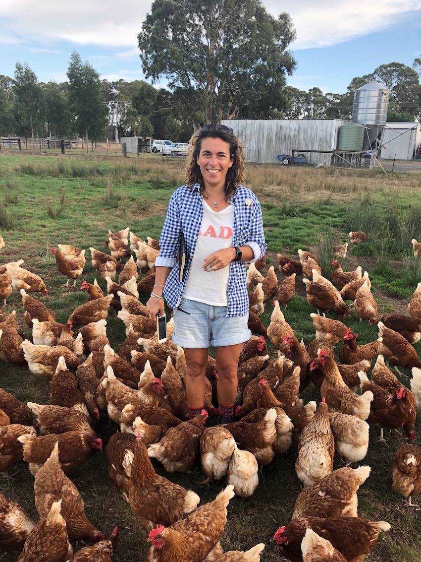 Jacqui and Gab want the number of chickens to remain around 100 hens per hectare. They passionately believe this plan for low stocking density is the key to both sustainable farming and providing a happy and healthy home for their girls to enjoy a dust bath, flapping their wings in flight, lying in the sun and scratching and foraging for bugs and grubs till their little hearts are content, the girls will live in the best ever conditions out in open pasture.