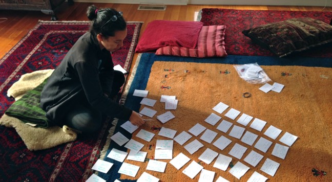 Image: Composer Ria Soemardjo working on The Chinese Whispers audio.